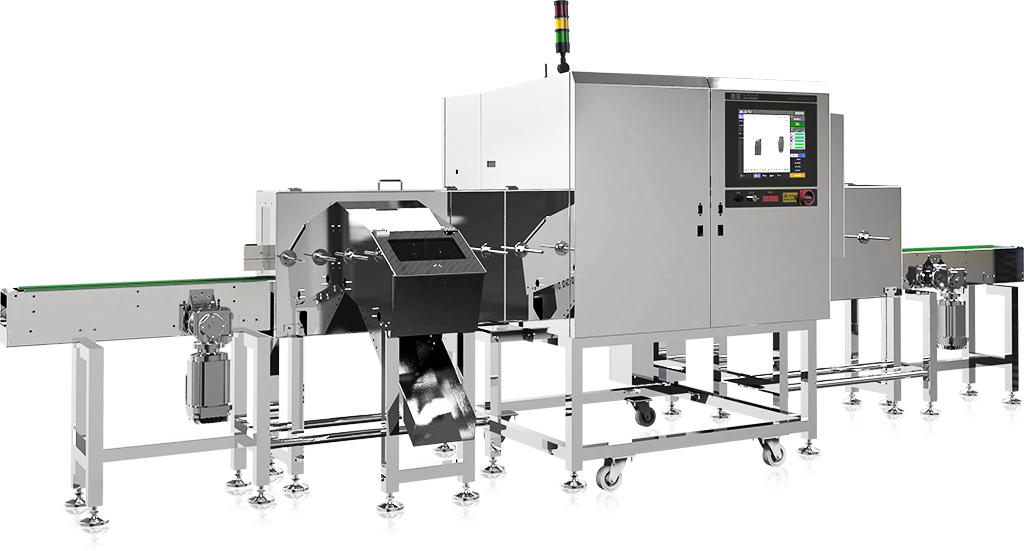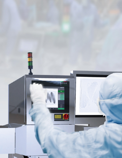 異物檢測和產(chǎn)品內(nèi)部缺陷檢測同步進(jìn)行。
